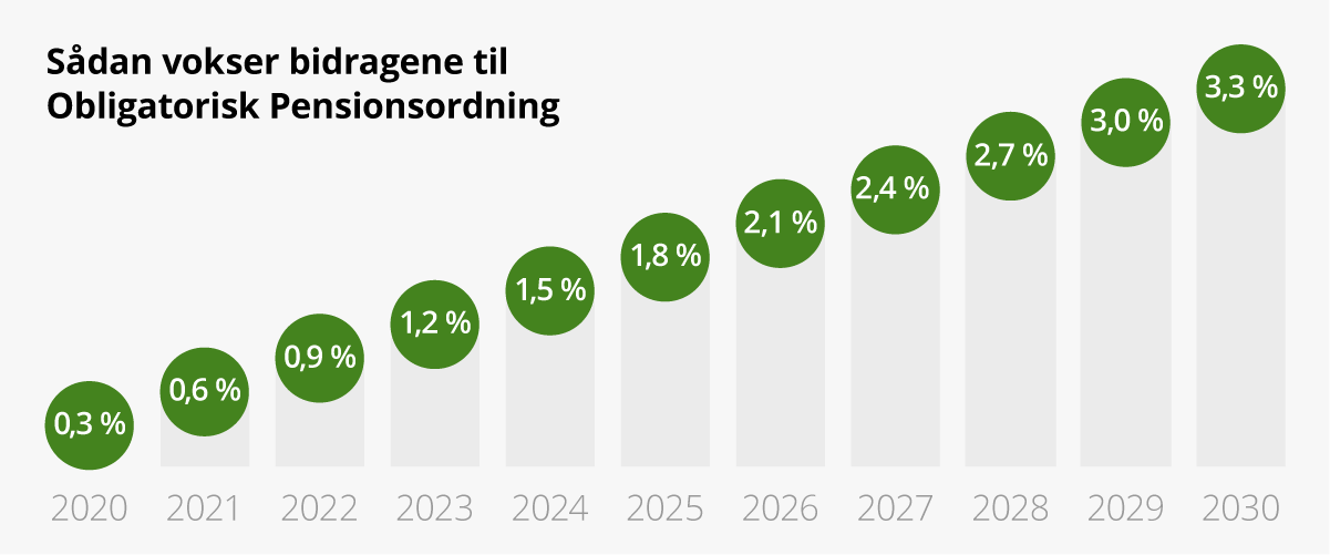 Du kan ikke selv indbetale til Obligatorisk Pension. Myndigheden, som udbetaler din overførselsindkomst, indbetaler bidragene automatisk. Det påvirker ikke størrelsen af din ydelse.